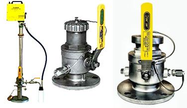 right is the unique MMC Model MBS fixed-in-place vapor-control valve with its built-in sampling port. The S series of